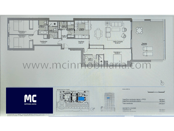 MÁLAGA TOWERS – MC Inmobiliaria comercializa este exclusivo pisoen planta alta de 160 metros distribuidos en 3 dormitorios, 3 baños, 1 aseo, salón comedor, cocina y una espectacular terraza frontal al mar – Dispone de sistema de climatización air zone con suelo radiante, amplios armarios empotrados, ventanas de seguridad con doble acristalamiento y rutura térmica, etc – El residencial incluye servicios de conserjería 24 horas así como espacios de trabajo, gimnasio, spa, piscinas, etc. – Además, esta unidad cuenta con 2 plazas de garaje y trastero – El reportaje corresponde al piso piloto, similar en planta baja – En cumplimiento del decreto de la Junta de Andalucía 218/2005 del 11 de octubre, informamos que el Impuesto de transmisiones patrimoniales, los gastos de notaría y registro regulados por arancel no están incluidos en el precio – Honorarios de agencia: A consultar – Contacto: 640 287 253 – MC Inmobiliaria